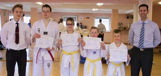 Am Freitag, den 08.04.2022 absolvierten 8 Schüler und Schülerinnen der Taekwondo-Gruppe unter Führung des Großmeisters Chung, und mit der Hilfe der beiden Schwarzgürtel-Träger Jan Breitenbach und Eric Maschke ihre Gurtprüfungen. Neben praktischen Übungen wurden auch einige theoretische Kenntnisse abgefragt, die vom Notwehrparagraphen über die Tugenden des Taekwondo bis hin zu koreanischen Fachbegriffen reichten.